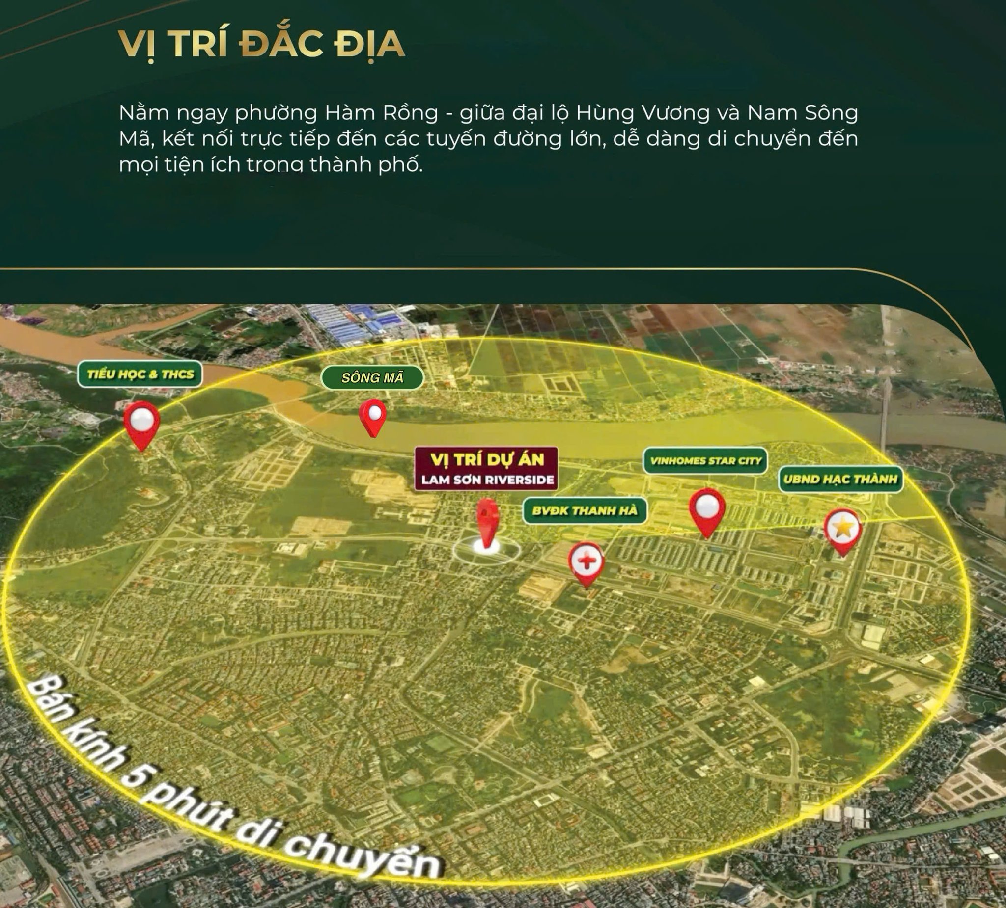 Nhờ vị trí chiến lược, cư dân dễ dàng tiếp cận các tiện ích hiện hữu của TP. Thanh Hóa và khu vực lân cận: