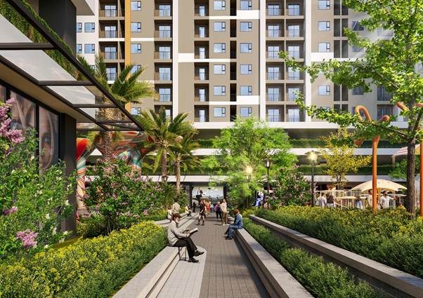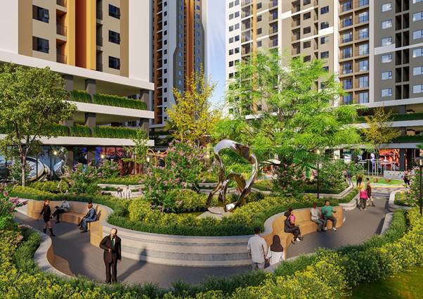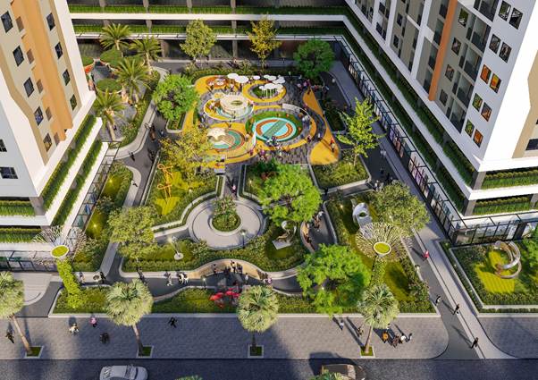Hệ thống tiện ích này được bố trí hợp lý tại khối đế của các tòa nhà, đảm bảo mật độ xây dựng thấp (tuân thủ tiêu chuẩn nhà ở xã hội) và ưu tiên không gian xanh lên đến 30-40% diện tích.